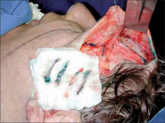 Para el procedimiento quirúrgico empleamos anestesia local con lidocaína al 0.5% y adrenalina 1:80.000, en plano subcutáneo, con bloqueo anestésico opcional de los nervios supraorbitario y supratroclear.(68)