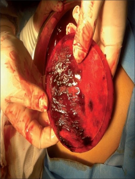 Una vez ante un caso de hematoma de gran volumen tras cirugía con implantes mamarios, considerar la oportunidad de recolocar la prótesis de manera inmediata tras la evacuación del hematoma, en función de la situación clínica de la paciente y del estado del lecho quirúrgico.