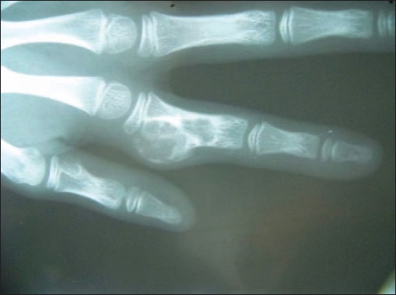 Key words: Enchondroma, Phalanx, Surgical reconstruction, Bone graft, Platelet rich plasm, PRP.