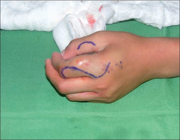 Varón de 12 años de edad evaluado durante una brigada humanitaria de Cirugía Reconstructiva, que presentaba crecimiento tumoral de la falange proximal del dedo índice izquierdo de aproximadamente 2 años de evolución, a quien previamente en otro hospital se le había ofrecido una amputación del segundo rayo como único tratamiento posible.
