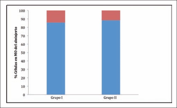 –El porcentaje de QR en la MO del aloinjerto fue mayor en el grupo sometido a tratamiento movilizador de CMMO CD34+ con plerixafor.