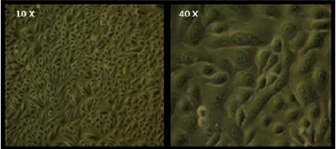 Methods: Two cellular models of human origin were used with the prior informed consent of healthy donors, mesenchymal stem cells obtained from Wharton’s gelatin and epidermal cells, isolated by digestion with dispase of skin samples. Both cell types planted at a rate of 5,000 cel/cm2 and cell adhesion was evaluated by the quantitative CellTiter 96® (MTS) method and qualitatively using the DAPI labeling of the cell nuclei.