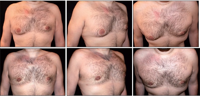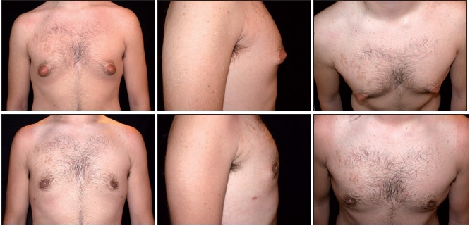 En el seguimiento a 1 año de los pacientes no encontramos casos de recidiva de la ginecomastia (Fig. 6-Fig. 7-Fig. 8- Fig. 9- Fig. 10- Fig. 11- Fig. 12- Fig. 13-).