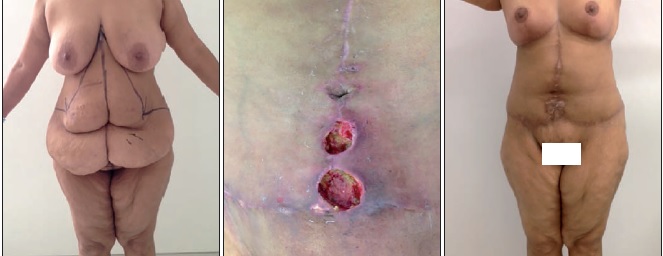 Introducción y Objetivo: Los pacientes sometidos a cirugía bariátrica presentan exceso de piel como resultado de su pérdida masiva de peso. Las cirugías de contorno corporal que persiguen solucionar sus problemas funcionales y estéticos no están exentas de complicaciones.