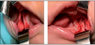 Presencia o ausencia de fisura de paladar en el momento de la distracción.