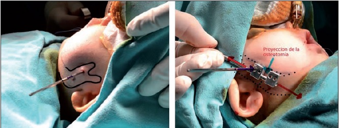 La técnica utilizada en estos casos es la distracción bilateral con distractor externo unidireccional, desarrollada por distintos autores en la bibliografía..(6,7)