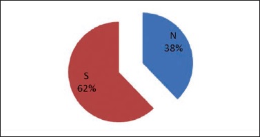 Existió un predominio de afectación del lado izquierdo 117 pacientes (54.6%) (Fig. 2), en comparación con 97 pacientes con compromiso del lado derecho (45.3%) (Gráfico 2).