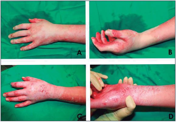 El desbridamiento quirúrgico precoz seguido de la cobertura con autoinjerto de piel sigue considerándose el estándar de oro en el tratamiento de las quemaduras profundas, ya que previene las complicaciones tempranas y reduce la incidencia de retracciones y anomalías cicatriciales.( 6 ) En cuanto a las complicaciones precoces de las quemaduras, determinadas localizaciones anatómicas como las extremidades, donde múltiples estructuras se encuentran en un espacio limitado con escaso tejido subcutáneo, suponen un riesgo considerable de lesión por compresión en relación con el desarrollo de síndrome compartimental.( 7 )