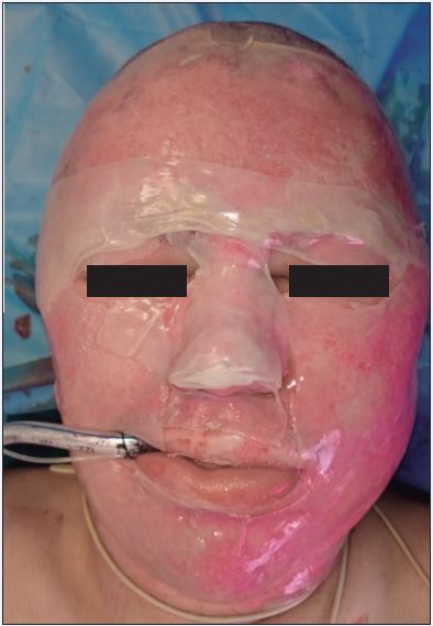 Seventy percent of the major burn patients have face burns and their surgical management depends on the depth of the burn; usually full thickness burns have to undergo early tangential excision with immediate coverage once the patient is stable and in the partial thickness facial burns the surgical management is dermoabrasion and coverage with topical agents, synthetic dressings or biological dressings. However, the dressing changes with topical agents are painful and frequent procedures and many of the synthetic and biological dressings are expensive and not available for some health systems.