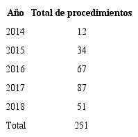En la Tabla I desglosamos el total de procedimientos realizados por año.