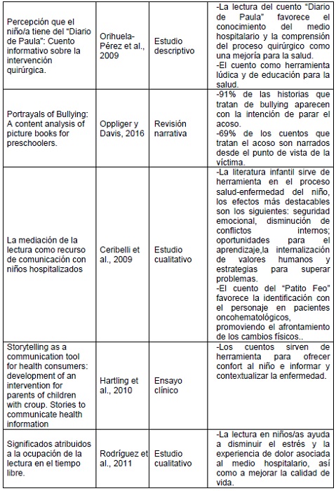 Objetivo : Analizar y destacar los efectos más relevantes de la utilización de la literatura en el proceso salud-enfermedad del niño en diferentes momentos y contextos.