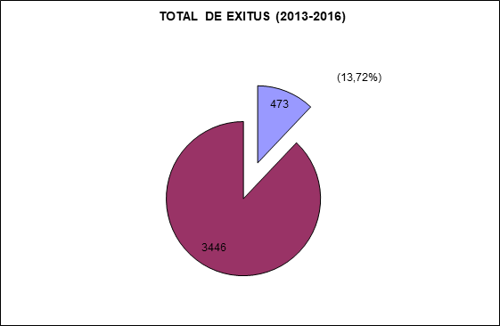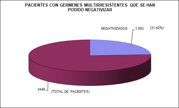 Aplicando la vigilancia y seguimiento epidemiológico desde el Servicio de Medicina Preventiva Calidad y Seguridad del Paciente durante el este periodo (2013-2016), se puede deducir que de un total de 3.446 pacientes con GMA en ese periodo, se han podido negativizar 1.083; lo que representa el 31,42% del total. (Fig. 1)
