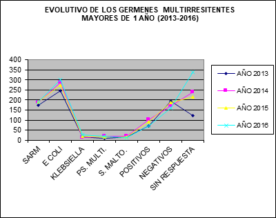 ABSTRACT: In the European Union, according to the Center for Disease Control, die approximately 250,000 individuals per year because of the multidrug resistant bacteria to antibiotics, with an additional cost of €1,500 million to health systems. The World Health Organization has defined as " the great threat to the public health" and predicts that could cause 10 million deaths in the year 2050. The present prospective study about the incidence of patients carriers of germs multiresistant to antibiotics (GMA), has been done from 2013 to June 2016 in the sanitary areas III-IV of Cantabria; with an estimated population of 200,000 inhabitants, distributed in two local hospitals (Hospital Sierrallana Torrelavega, Hospital of Three Seas Reinosa), 14 health centers and social health centers. The process was applied monitoring, control and epidemiological monitoring, made from the Preventive Medicine Service Quality and safety of the patient with the collaboration of the Service of Microbiology and Primary Care. Of a total of total of 3446 patients with germs with GMA, have been negativizar 1083 patients, which represents the 31,42% of the total. Taking into account that each of these patients remain admitted an average stay of 5 days more than those who do not have these multirresistencias to antibiotics. Has been achieved that these patients once negatives could enter without being isolated and what this presents at the level of health, economic and psychologically; as well as to improve the sanitary resources.