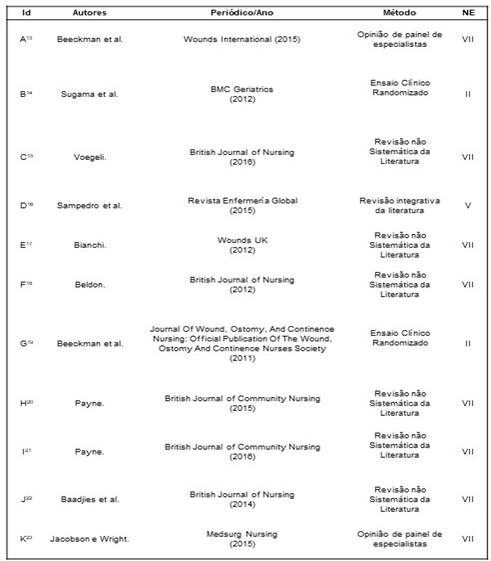 Results: Eleven articles were selected and the results were grouped into three dimensions: I. the first presents the characterization of incontinence-associated dermatitis around two categories (definition of incontinence associated dermatitis and differentiation of incontinence / pressure ulcer), II. Related to the issues of diagnosis and evaluation and III. On interventions appropriate to quality care and divided into three categories (prevention, treatment, education and training).