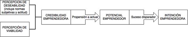 En este modelo se destaca la relación de las percepciones de deseabilidad y de viabilidad como factores determinantes de la credibilidad emprendedora.