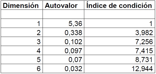 *El índice de condición se sitúe en los entornos de 10-20, indicando poca colinealidad17.