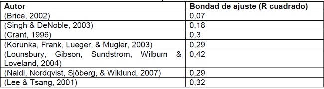Este dato es significativo, especialmente si lo comparamos con los valores de ajuste de otros modelos de emprendimiento (tabla 6).