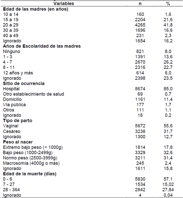 La base de datos, SIM, registró 10.210 muertes de menores de un año de madres residentes en el estado de Piauí, en el período 2004-2014. El SINASC, a su vez, registró 565.719 nacidos vivos en el período analizado.