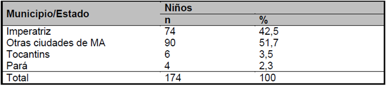 En cuanto a la procedencia de los sujetos del estudio, 90 (51,7%) eran de otras ciudades circundantes a Imperatriz y hasta 10 (5,7%) eran de otros estados (Tabla 2).