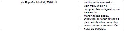 Todo esto influye directamente sobre la salud del individuo y la empeora en el país receptor 9. A esto, se le suma la mala utilización que estos realizan con respecto al Sistema Sanitario, por la presencia de motivos como (Tabla 1):