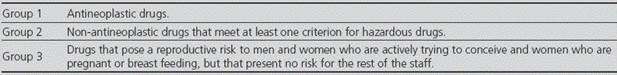 In 2004, the National Institute for Occupational Safety and Health (NIOSH) defined the term Hazardous Drug (HD)1 as those medications presenting one or more of the following risk criteria in humans: carcinogenicity, tetarogenicity or other toxicity for development, reproductive toxicity, organ toxicity at low doses, genotoxicity; and new medications with structure and toxicity profiles similar to existing medications already classified as hazardous according to the previous criteria.