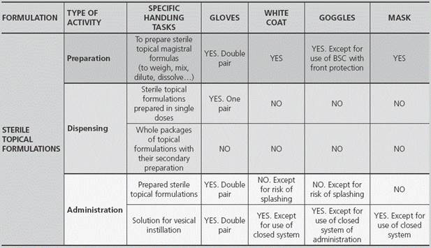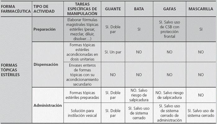Las cremas u otras formas tópicas deben aplicarse con los EPI indicados. Durante la técnica se restringe la manipulación a lo mínimo posible, utilizando espátulas u otros productos de aplicación que eviten el contacto con el producto.