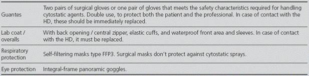The following HD handling recommendations were reviewed: by the NIOSH4, INSHT6, Oncology Nursing Society (ONS)14, American Society of Health-System Pharmacists (ASHP)15, National School of Occupational Medicine in the Instituto de Salud Carlos III (ISC)16, U.S. Pharmacopoeia (USP)17 and International Society of Oncology Pharmacy Practitioners (ISOPP)18; and based on these, general recommendations for HD handling were prepared for each of the procedures detected (Appendix 1)19,20.