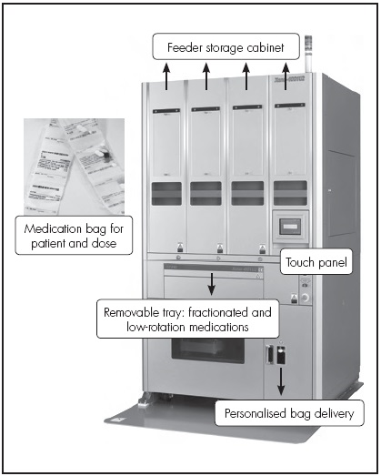 There are few publications on the automated dispensing of medicines in nursing homes. Given that institutionalized patients are both frail and polymedicated, it is essential to ensure that dispensation is both safe and adapted to the needs of the residents and the institutions.
