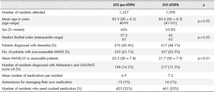 Statistical analysis: At the descriptive level, sociodemographic, functional capacity, cognitive functioning, and pharmacological variables were analysed according to their frequency, mean, and standard deviation. Differences between the pre-ATDPS and ATDPS groups by age, functional capacity, and cognitive functioning were analysed using the Student t-test for independent samples. The data was analysed using the SPSS v20.0 statistical software package.