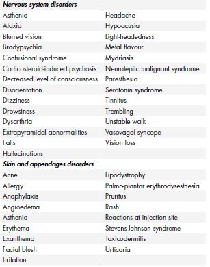 The areas most affected by ADRs were the skin and appendages, gastrointestinal tract, blood, and central nervous system (CNS). The literature reports different findings and suggests that the gastrointestinal tract, CNS, and skin are more frequently affected by ADRs. Patients and health staff can easily and quickly detect cutaneous ADRs because of their manifestations, as well as those that affect the gastrointestinal tract22. In general, the detection of ADRs depends on staff experience because ADRs can manifest in an insidious manner and can be easily confused with the clinical manifestations of the disease itself16.