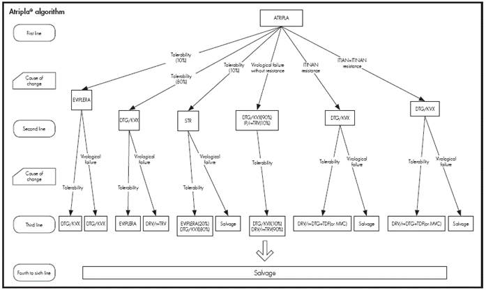 Fixed-dose combinations of antiretroviral drugs have meant an important step forward in simplifying treatment and improving compliance. Better com-pliance has led to a lower risk of treatment errors and decreased resistance selection, which results in an increased effectiveness of therapy with the con-sequent decrease in viral load and improvement in quality of life of patients6.