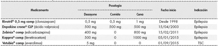 El tratamiento del paciente al inicio de la terapia con everolimus consistía en los siguientes medicamentos antiepilépticos: ácido valproico, clonazepam, levetiracetam y eslicarbazepina (Tabla 1).