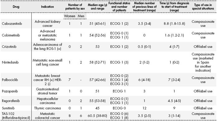 Objective: To analyse the effectiveness and safety of oral antineoplastic drugs (ANEOs) that are authorized in special situations in a third-level hospital and to compare the results obtained with the clinical evidence used for this authorization.