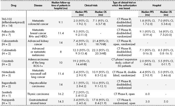 Regarding the effectiveness of the treatments, Table 2 shows survival results compared with the clinical evidence used for the authorization of treatment6-14.