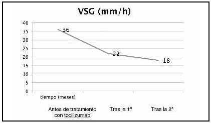 Tocilizumab podría convertirse, por tanto, en una alternativa terapéutica a tener en cuenta en esta patología, convirtiendo este artículo en soporte bibliográfico para los clínicos ante una situación similar donde se han agotado las opciones farmacológicas.