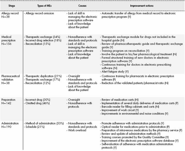 Rather than using an epidemiological approach to investigate the prevalence of MEs, we applied a method that enabled us to assess the overall quality of the pharmacotherapeutic process by monitoring the different stages of the process in the same patient through the detection of MEs. In addition, the working group analysed the management and causes of MEs and also proposed improvement actions.