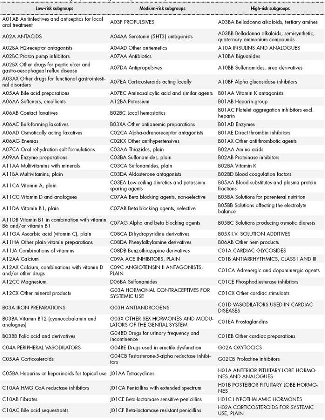 A RAM was used to classify ATC subgroups by their potential risk (low, medium, or high). The main contribution of this study is to make these reference lists available. These lists can be integrated into a risk-scoring tool for future patient/medication safety studies.