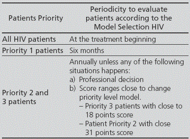 We believe that this model supports the expansion of Clinical Pharmacist involvement in HIV-positive care centers, in order to establish a selection and stratification model in the interdisciplinary team as the standard for achieving best practice.