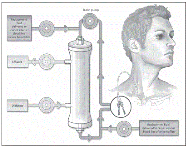 La terapia de reemplazo renal continuo (TRRC) se desarrolló durante la década de los ochenta del siglo pasado para el tratamiento de los pacientes críticos con insuficiencia renal aguda que no podían ser sometidos a la tradicional hemodiálisis intermitente (HD). Actualmente, la TRRC se considera más adecuada que la HD en pacientes que presentan inestabilidad hemodinámica, hipervolemia y acidosis metabólica persistente.