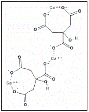 El citrato produce hipocalcemia por su mecanismo de acción, como se observa en la Figura 2. Para corregirla, se administra una solución concentrada de calcio después del hemofiltro. Se trata de una solución de cloruro de calcio que se elabora en la Unidad de Mezclas Intravenosas a una concentración de 97 mmol/L a partir de una fórmula magistral que contiene 14,26 g de CaCl2 2H2O en un volumen de 20 ml. Esta cantidad se disuelve en 980 ml de suero fisiológico. Según estudios propios, la solución permanece física y químicamente estable y mantiene su esterilidad durante al menos siete días almacenada protegida de la luz. El manejo seguro de estas soluciones concentradas de calcio requiere de un estricto control del circuito (preparación, etiquetado, almacenamiento y dispensación) para evitar confusiones con otras preparaciones.
