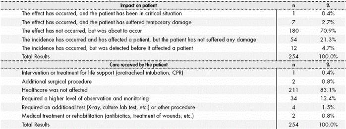 The distribution of the effect on the patient and impact on healthcare are shown in Table 3, according to the categories pre-defined in SINEA. There are no elements that will allow to refine them.