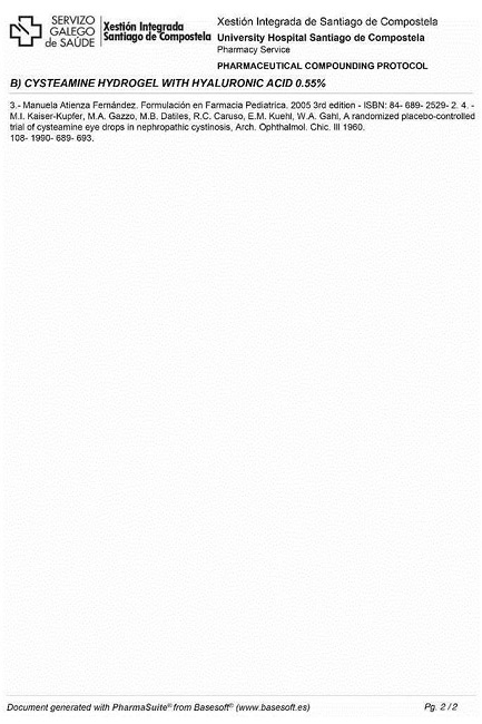 Lawal B. Development of a cysteamine in situ gelling system for the treatment of corneal crystals in cystinosis. (Published July 2008. Accessed February 3,2016). Disponible en: https://cystinosis.org/images/research/updates/CRN_Research_UpdateB.pdf