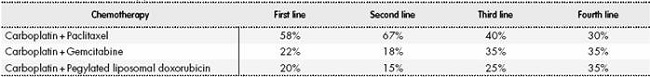 Each histological and/or molecular subtype is associated with distinct clinical behaviour, but historically they have been treated as a single entity. The combination of surgery and platinum-based chemotherapy is the gold standard for the first-line treatment2 of patients at advanced stages. However, 70% of patients relapse at 3 years5, resulting in multiple treatment lines. Most patients respond to platinum therapy and are considered platinum-sensitive when there is a progression-free period of > 6 months from the last dose2. Standard treatment may be combined with anti-angiogenic therapy administered as maintenance monotherapy until progression, as it has been suggested that maintenance therapies administered to patients with a partial or complete response to chemotherapy may delay or even prevent recurrences8.