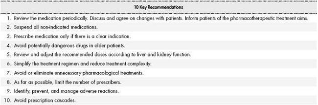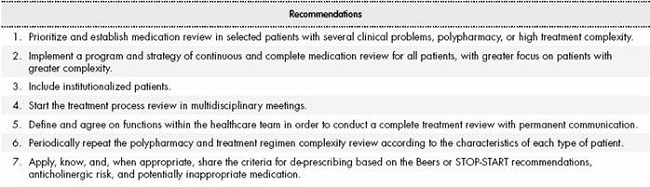 These new approaches to the management of medication derive from the concept of optimization of pharmacotherapy and the inclusion and application of these new concepts. This has led to a consensus on the need to review all prescribed medications at least every 6 months in elderly HIV-positive patients who have been prescribed 4 or more medications, and at least once a year in the remaining patients19. An emerging priority is to identify and establish strategies to reduce medication regimen complexity and avoid polypharmacy in elderly HIV-positive patients to the greatest extent possible. It is recommended that the review of prescribed medications should be conducted in a systematic manner using a sequential and structured methodology. Table 2 and Table 3 show recommendations extracted from the literature on optimizing prescription strategies and introducing a review of polypharmacy in daily clinical practice.