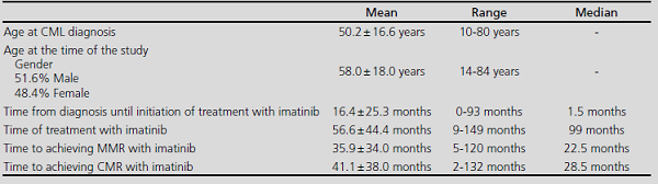 The proportion of patients who reached CMR (Com- plete Molecular Response) during treatment with imati- nib was 58.1%, and the mean time elapsed until achie- ving said stage was 41.1 ± 38.0 months (Table 1).
