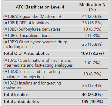 A first descriptive analysis was conducted of the clinical and pharmacotherapeutical profile of patients, and more in detail regarding the antidiabetic home treatments taken by patients; the frequency of the diffe- rent therapeutic sub-groups was analyzed according to the Anatomical Therapeutic Classification (ATC) by the WHO, and the combinations of antidiabetic drugs used. In order to describe patient management and their treatment at hospital admission, the therapeutic decision implied in each ER prescription was classified into: omission, continuation, or modification of home treatment.