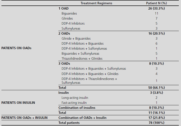 The majority of patients included in our study were on home treatment with OADs (85.9%), which means that they needed a treatment modification at admission, given the overall contraindication for the use of these