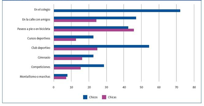 La actividad física en la infancia y adolescencia genera una serie de beneficios físicos, pero también la oportunidad para desarrollar interacciones sociales, sentimientos de satisfacción personal y bienestar mental16. La mayoría de los adolescentes de nuestro estudio realizan actividad física, siendo significativo el mayor porcentaje de chicos que lo hacen y su disminución en cursos superiores. Varios estudios refrendan nuestros resultados7,8. A medida que los jóvenes se hacen mayores, sobre todo a partir de la pubertad, empiezan a salir más y a dedicar más tiempo al estudio y a la diversión y, en algunos casos, se abandonan prácticas deportivas que se realizaban en el ambiente escolar o centros deportivos, sobre todo cuando el hábito del ejercicio físico no estaba totalmente consolidado. Por otro lado, un menor nivel socioeconómico se asocia con menor actividad física, probablemente porque aparte del tema económico, que no debería condicionar la práctica de al menos algunos deportes, los padres no lo practiquen o desconozcan los beneficios que aporta para llevar una vida saludable y, en cualquier caso, no han sido capaces de generar en sus hijos hábitos en la práctica deportiva17. En la actualidad existe un amplio consenso acerca de que el incremento de la participación en actividades físicas y la reducción de la conducta sedentaria deben ser el principal objetivo de las estrategias de promoción de la salud en la infancia y la adolescencia18,19,20.
