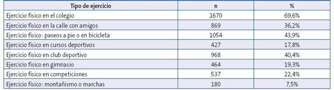 Métodos: se realizó una amplia encuesta de carácter anónimo y autocumplimentada a 2412 escolares de 13 a 18 años, extrayendo los datos relacionados con la alimentación y el ejercicio físico, entre marzo y mayo de 2012.