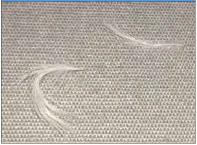 Se aprecia cómo pequeños fragmentos de pluma atraviesan fácilmente el tejido y salen al exterior. El aspecto de las plumas es igual al de la extraída de la cabeza del niño